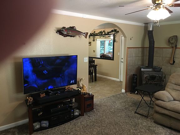 Single story, new carpet in all rooms and new flooring in kitchen. The garage is attached with over 920 square feet of storage for all your toys. There is a covered porch with a hot tub and a view of the tall pines on the property. House has central air for heating and cooling with a wood burning stove for backup heating. Water is supplied by municipal water company and sewer by septic system. The lake is just a short 5 minute walk and Trinity Center is just 2 miles away. Stove and hot water heater are propane along with house heater. Home is well insulated and windows are double pane. Showings are by appointment only Monday thru Sunday. This is a sell by owner and as such, we will not compensate a realtor.