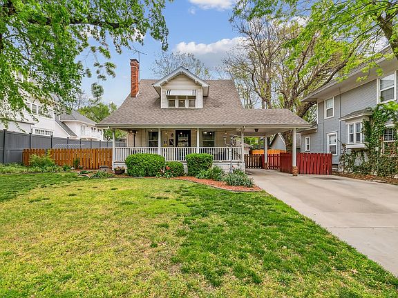 Welcome to College Hill living at its finest! This stunning 1920-built home offers timeless charm and modern comforts in one of Wichita's most sought-after neighborhoods. Step inside to discover a spacious two-story layout boasting 5 bedrooms and 3 bathrooms, providing ample space. The main floor greets you with a large formal dining room featuring gleaming hardwood floors, perfect for hosting gatherings and creating lasting memories. Adjacent, the kitchen eating nook showcases a built-in hutch, adding both functionality and character to the heart of the home. Relax and unwind in the generous living room, complete with a cozy wood stove, ideal for chilly Kansas evenings. Need a quiet space to work or study? The main floor den and upstairs office offer versatile areas to suit your needs. Convenience meets comfort with zoned heating and cooling throughout the home, ensuring year-round comfort for you and your loved ones. One main floor bedroom offers flexibility. Upstairs, you'll find four additional bedrooms, each boasting walk-in closets for ample storage. A walk-out basement adds further potential, providing space for recreation or storage as desired. Outside, the beauty continues with a fenced backyard featuring raised gardens, creating a serene oasis for outdoor enjoyment and entertaining. Vinyl siding ensures low maintenance for years to come. There is a 2-car detached garage and a separate attached carport, providing plenty of space for vehicles and additional storage. Rich in history and lovingly maintained, this home has been cherished by the same family for 55 years, offering a rare opportunity to own a piece of College Hill's heritage. Don't miss your chance to make this timeless treasure your own!