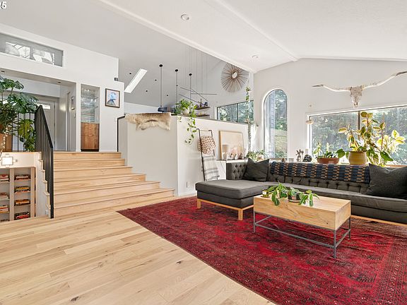 This contemporary NW modern home, designed by architect Jon R. Jurgen in 1982, has been beautifully updated with modern fixtures and designer finishes. Enter into a soul lifting space intentionally designed to utilize the sun's light to its advantage. The open kitchen to dining room with vaulted ceilings and natural light pouring in from the clerestory windows has been updated with Pedini cabinets, Miele+Gaggenau appliances including the Vario 400 series cooktop. A generous cooking area with quartz counters,spacious pantry and built-in mini bar with travertine details. Descend into the airy living room with walls of windows,hickory flooring and a double sided gas fireplace. A glass door connects the living room to a solarium equipped with slate flooring, sliding doors to cool the home naturally and the gas fireplace for a year round lounge space. The lower level solarium includes a sauna and outdoor shower for wellness+ relaxation at home. The primary suite features a modern custom cement bathroom with ash built-ins, Toto + Brizio fixtures,quartzite counters, soaking tub and a walk-in closet. The main level also hosts a laundry mudroom with designer tile,custom storage and Miele washer/dryer.Between floors, just past the bookshelf, discover the secret tiki bar with acacia flooring and a 600 bottle wine storage wall. The lower level features 2 bedrooms, a full bath w designer tile,soapstone counters and custom cabinets. Attached to the lower level is an ADU w updated kitchen & bath,cork floors, & private entrance. The outdoor oasis is set up for entertaining w a multi level deck/patio hosting a wood fire pizza oven and wood fire grill. A lush landscaped backdrop w a waterfall feature and a hot tub on the lower deck. Hobbyists can appreciate a dedicated workshop and additional updates include new -exterior paint,electrical panel,garage doors and gas generator. Conveniently located next to Pittock Mansion + trail systems, minutes to dwntwn Portland, St. Vincent & Nike. [Home Energy Score = 5. HES Report at https://rpt.greenbuildingregistry.com/hes/OR10239588]
