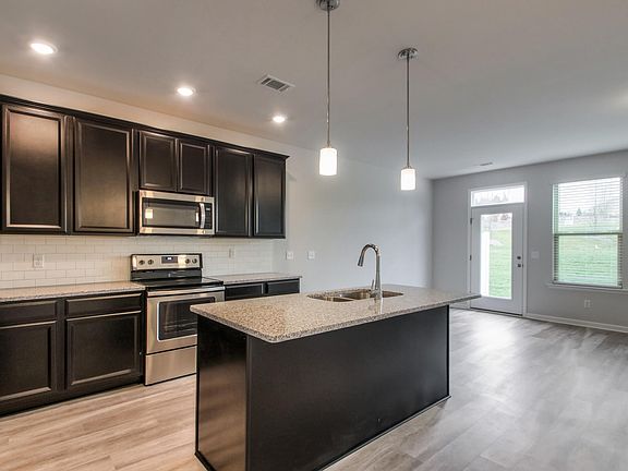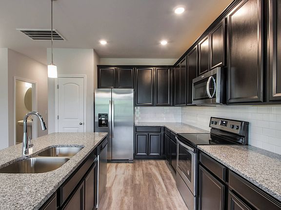 The Beckett's welcoming foyer leads into the open-concept living area and kitchen. Upstairs, the owner's suite offers dual sinks and a walk-in closet. Espresso cabinets, oak EVP flooring and Luna Pearl granite countertops come in our Bold Package.