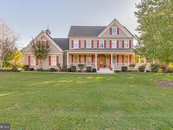 Gorgeous custom built home by/for owner & builder for his own personal residence 20 years ago. Home is immaculate & in like new condition! Four spacious bedrooms, 2 full baths w/ 3 half baths total. This Colonial has approximately 4000 sq. ft. of living space, sitting on 1 acre, beautifully landscaped & surrounded by mature trees backing up to wide open farmland. Upgrades galore w/ a beautiful new kitchen including large island w/ seating and a built in wine frig., granite countertops, amazing new master bath with soapstone countertops, cool new jack/jill full bath, large finished bonus room w/ entrance from 2 bedrooms, 2nd floor laundry, stone gas fireplace in family, 3 electric fireplaces (master BR, 2nd BR & basement rec area), walk out finished basement with lots of built ins, main floor living has real hard wood floors, entire home including front porch & garage interior is freshly painted, new appliances, custom trim work throughout home, large storage closet in basement and when you are ready to relax, step out back and enjoy your own private Oasis with the Lagoon style pool as well as the six person hot tub to enjoy on the cool fall & even cold winter nights or simply enjoy the peace of sitting/swinging on the large wraparound front porch w/ swing. Out back you will find the pool is surrounded by beautiful landscaping, lighting & a spacious covered outdoor living area with a bar area setup including built in cabinets, granite counter top, built in refrigerator/freezer & TV hookup. The oversized large concrete driveway has sufficient room for five vehicles to park without blocking anyone in and leads you into the oversized, heated, 2 1/2 car garage w/ work area, storage & even a 1/2 bath. Your new home will stay comfortable all year long w/ the two zone heat system; gas on main & new heat pump on 2nd. New 30 year architectural shingle roof in 2019. Other systems include a tankless hot water heater, water filter/softener, Ring doorbell and a built in speaker system throughout home including garage & pool area. Great location w/ easy commute to VA, MD, DC. Truly a must see! Call for a private showing!