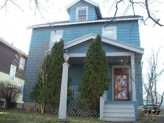 NEW PRICE! A bright and Spacious Colonial Home in Eastwood. Good location, close to everything. The homeowner is a finish carpenter and has added many extra built-in features like cabinets and windows. There is a bright eat-in bay window breakfast nook and a formal dining room too. There are hardwood floors throughout the home. Upstairs has three bedrooms and then the third floor is finished with hardwood floors as well. The basement is semi-finished it has a half bath and laundry area. There is a 1 car detached garage, which the owner uses for a woodshop. Make an appointment today by phone.