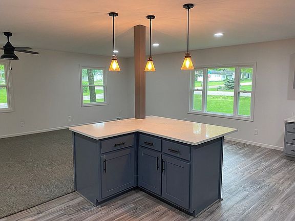 Open concept, all new energy efficient windows and doors, fully remodeled, extra large room with fireplace, new custom made cabinets in kitchen and baths with Quartz countertops, new flooring, corner lot with big yard, close to Stillman Valley schools, nothing to do but move in and enjoy.