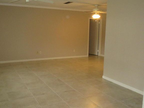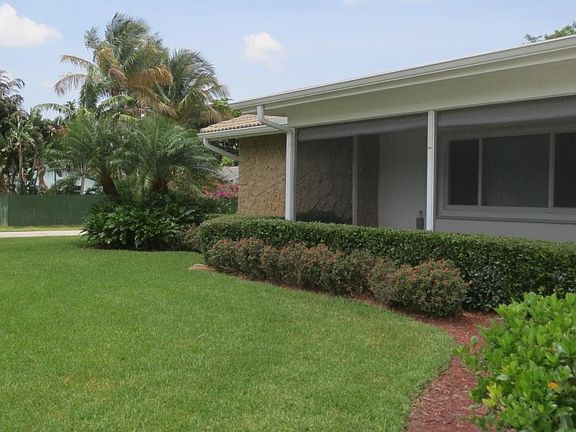 Absolutely fantastic home in desirable Florida Gardens!! Move right inNOTHING needs to be done!! Spacious open floor plan is perfect for family living and entertaining!! The split bedroom plan creates almost 2 master suites (A third bedroom can be made easily by adding a wall.) Crown molding throughout. Beautiful porcelain tile floors (except for 2nd bedroom) throughout this home. Kitchen has been completely upgraded with wood cabinets, granite counters, recessed lighting plus under cabinet lighting. The original master bedroom has a walk-in closet and the master bath has been completely updated. Master shower has multiple ''jet'' heads. The family room has it's own new air conditioner and a door to the back patio. The large front patio has been completely screened in.
