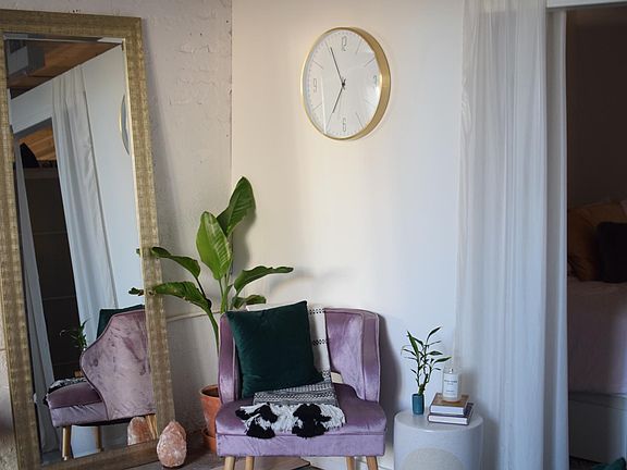 This energetically designed space is a cozy luxe safe haven in the city. The physical space is filled with natural light throughout the entire day. There are stainless steel appliances in the kitchen with an in-unit washer and dryer. It is a studio loft with a floating wall sectioning off the bedroom. Right in the heart of the beautiful and historic neighborhood of Castleberry Hill. There's a communal rooftop with a beautiful view of the downtown ATL skyline. The neighborhood is commuter friendly with the nearest MARTA train station a quick 10-min walk away and bus stops on the street. There is plenty of Free street parking around the building and throughout the neighborhood, and the unit comes with a parking spot in the covered, gated garage attached to the building. Not only is it wonderfully located in the city with most places and attractions within a 15-minute distance, it's the perfect neighborhood to walk around and get to know with multiple coffee shops and restaurants right next door. The Mercedes Benz Stadium and State Farm Arena are both within walking distance. The streets are filled with beautiful murals, art studios, and restaurants and bars for patrons to enjoy. Looking for tenant to move in at the beginning of the year. Property comes fully furnished and owner pays for all utilities excluding Electric with $1,900 all inclusive pricing. Open to negotiating. $1,000 refundable security deposit as long as lease is fulfilled full-term and no damages made to property and proper notice of departure is given. One pet is allowed, but willing to be flexible here. One parking spot is also included in the lease fee and is in a covered, gated, and secured garage attached to the building. Currently looking for a shorter term lease (preferably a 6-month lease) with the potential to extend starting January 1. Please reach out directly to schedule a tour in the coming months!