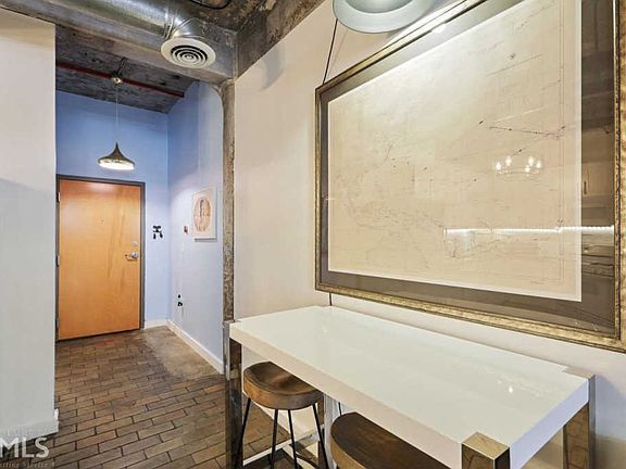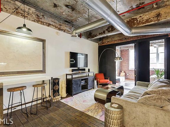 Experience this authentic industrial loft at Swift & Co. in Castleberry Hill. Swift & Co began life in the 1920's as a meat packing facility & today is an excellent example of early 20th century industrial architecture. #18 features everything you'd expect in a 100 year old loft: exposed HVAC ducts, brick, tile & wood floors, concrete ceilings, & steel doors. 4 separate living-zones create a very flexible flrpln. The kitchen is fully equipped & functional with stone counters, tiled backsplash & custom under-lit cabinets. The raw loft texture is complemented by more polished features like a custom-designed & built-in closet/office nook, a full size laundry room, remote black-out shades, & custom Murphy bed. You'll fall in love with the large bank of North-facing windows offering soft morning light. Unit comes with one deeded parking space in the attached, secured garage. Swift & Co also offers its residents a lush, private interior courtyard & expansive rooftop deck where you can peer out over Downtown Atlanta & Mercedes-Benz Stadium. Easy walk to all Castleberry Hill shopping, dining & nightlife. Marta, 75/85/I-20 are all close by. Rental restrictions apply & no AirBnB.