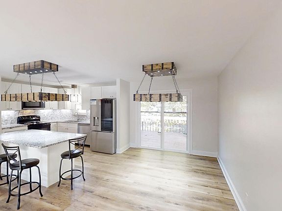 The kitchen is a showstopper—featuring new cabinets, an oversized island with two electrical outlets, and stunning granite countertops on both the island and perimeter cabinetry.