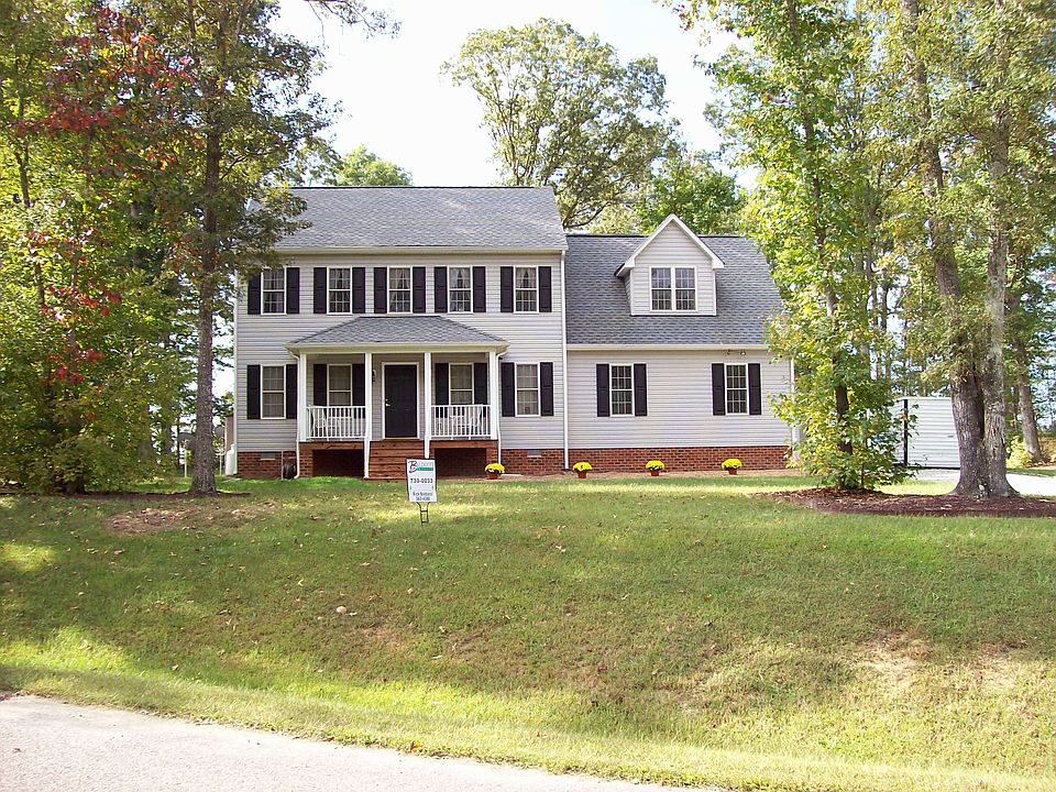 Immaculate two story, custom built by Balducci Builders. Spacious with four bedrooms, 2 1/2 baths, large den with gas fireplace, large kitchen with custom oak cabinets, Corian countertop and vaulted ceiling. Huge master bedroom with walk-in closet and second closet. Master bath has whirlpool. This home is loaded with upgrades including: night vision security cameras, DVR, CAT 5 network wired, 2 zone heat pump, 2 car garage with remotes, security system, hardwoods in foyer and dining room, ceiling fans in all bedrooms and living room, generator switch, patio, deck, shed, gutter guards. All appliances convey. Large wooded cul-de-sac lot. MLS 1426881 AGENT Rick Balducci 804-730-0034 or homeowner 804-337-4505