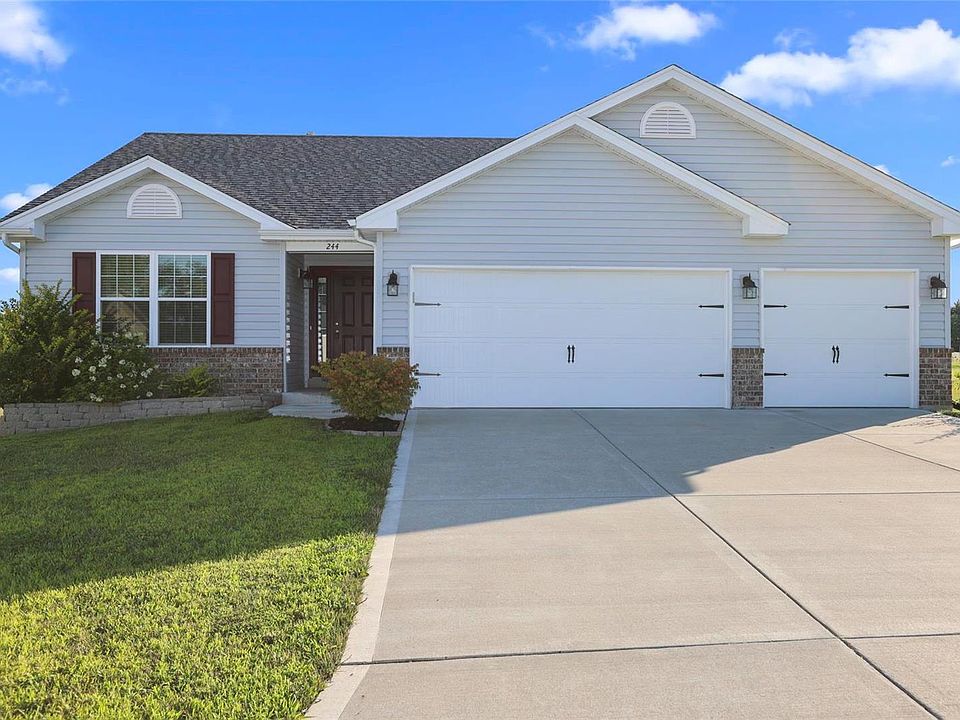 Built in 2017 this home is lightly lived in and has so much to offer! The upgraded elevation with brick and covered entry adds to the exterior of this home. Step inside the desired Open Floor Plan with Vaulted Ceiling in the Kitchen, Great Room and Owner's Bedroom, 3-Car Garage, Walk-Out Lower Level with Rough-In for future bath! Natural light filled and Neutral paint throughout! Kitchen showcases Pendant Lighting, GRANITE COUNTEROPS, PANTRY, SPACIOUS CABINETS, STAINLESS and BLACK APPLIANCES! SPLIT BEDROOM FLOORPLAN offers PRIVACY, UPGRADED INTERIOR DOORS, some TRACK LIGHTING, MARBLE VANITIES, LINEN CLOSET, MAIN FLOOR LAUNDRY, LUXURY OWNER'S BATH, GARDEN TUB and SEPARATE SHOWER, WALK-IN CLOSET, COMFORT HEIGHT Vanities in Baths, TILT-IN WINDOWS, NEUTRAL CARPET AND FLOORING. CEILING FANS IN GREAT ROOM AND OWNER'S BEDROOM! Bay in Breakfast Room, Built-In Microwave, Brushed Nickel Hardware, Enclosed Soffits, Fascia. All this and nestled in a CUL-DE-SAC! Just minutes to Highway 70 access!