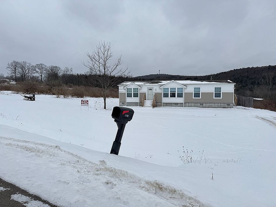 Reason for selling is relocating. Sale by owner. Serious inquiries only!!! No rent to own. House shown by appointment only. 3 acre double wide home located right in West Windsor. Greats views all around you. Perfect house to host family/friend gatherings. Minutes from the highway. Quite and safe neighborhood. The house sits on a concrete slab with hurricane anchors. No basement. Three Bedroom two bathroom home with a master bath right off the master bedroom with walk in shower and walk in closet. New flooring done in the kitchen and dining room, and master bathroom. New carpet put down in living room. House comes with central air, propane heat, electric fire place in the living room. A deluxe cabin shed with front porch also comes with the property. Has a fenced in yard that is great for pets. Contact Grayson at 607 727 1166 or Robyn McGuane at 570 396 6010 for more details!