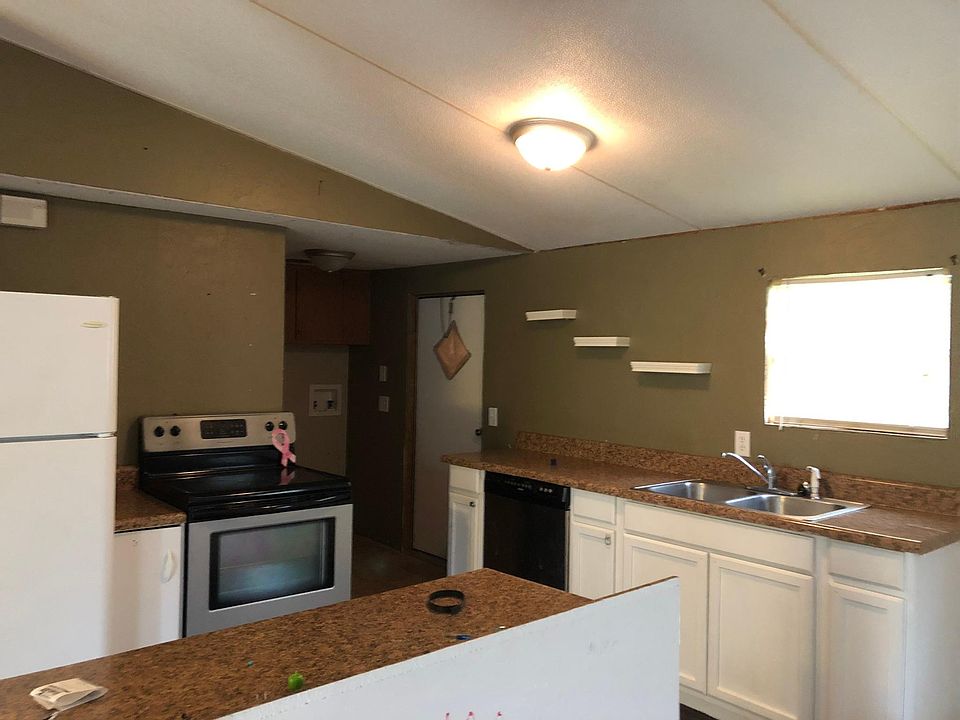 3 bedroom 2 bath double wide with fenced yard carport and shed.