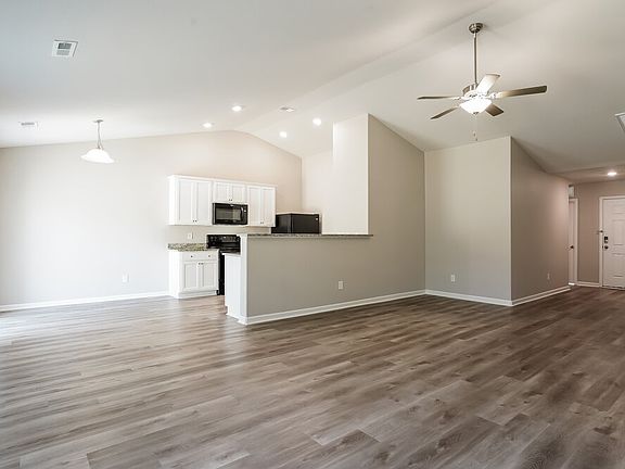 - Exterior features: 1 Story, Eat-in Kitchen, High Ceilings, Open Floor Plan, Oversized Bathtub, Quartz Countertops, Smart Home