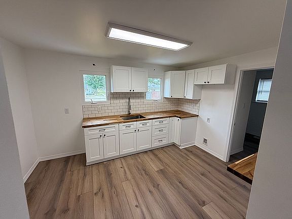 * Kitchen: Brand new, high-quality cabinetry, butcher block countertops, modern fixtures, tile backsplash and butcher block breakfast bar with an open feel