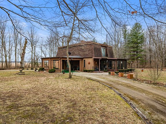 Your piece of paradise is waiting! Seclusion, serenity, peace and quiet, whatever you want to call it, you will find it here on this 8.7720 wooded acreage. Nestled in the middle of this property you will find a 2208 sq. ft. home, plus 1120 sq. ft. finished basement with 3 bedrooms and 1 1/2 baths. There are two wood burning fireplaces, one in the living room and the other in the 25'x16' upstairs bedroom. Master and one other bedroom have walk-out balconies. A wood burning furnace heats the home that has an electric forced air back up if the wood burns out. There is a sound system (stereo included) throughout the home. There are plenty of places to enjoy the outdoors and abundant wildlife. Three seasons room off dining room to sit and enjoy a cup of coffee or meals and a partially covered back patio. Attached to the home is a covered 22'x17 parking area. Appliances and washer and dryer included.