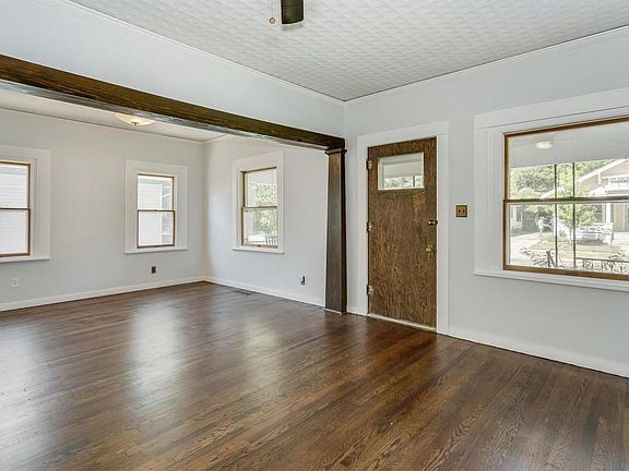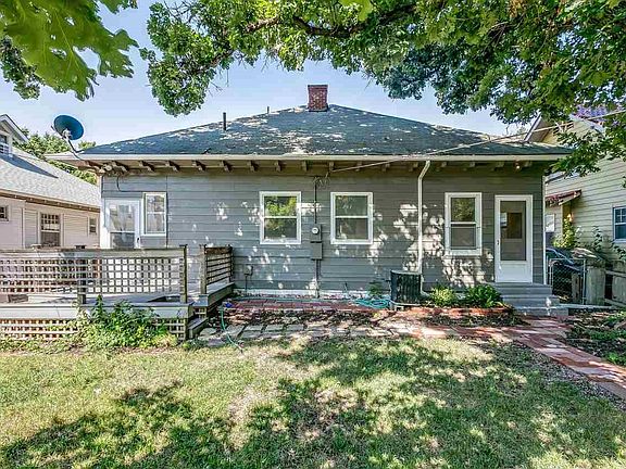 Super adorable and updated bungalow. Beautiful refinished hardwood floors throughout. Remodeled kitchen, remodeled bathrooms, brand new stainless kitchen appliances, fresh interior and exterior paint, new ceiling fans, and the fireplace mantel was custom made with Kansas walnut cured since 1940! 2 sheds in the backyard for storage. Fenced yard. Beautiful landscaping surrounding the home. The landscaping was not only planted to beautify but also to slope the yard for drainage. There are edible plants such as chamomile, sage, oregano, dahlia & mallow. There are also lettuces, blueberries, strawberries, grapes and asparagus. All plantings are perennials so they will come back every year. The grass is new so it should be seeded one more year in the spring and fall to have a more perfect lawn! The lawn and plantings are completely organic. A french drain was added in the back to prevent excess water. Move in ready to this beautiful home with lots of extras!