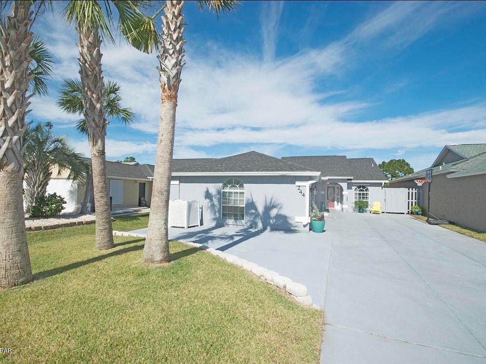 CURRENTLY UNDER CONTRACT, SELLER ACCEPTING BACKUP OFFERS - Updated home located in the Glades neighborhood which is minutes from the beach and is golf cart friendly with access on Hutchison Blvd and PCB PKWY. There are many updates throughout the home such as wood floors, roof, gutters, interior and exterior paint and an extended driveway. The master bedroom has decorative flooring, chandelier lighting, dressing area and oversized bathroom. The pool is an inground and saltwater for easy maintenance. The backyard has pavers, extra lighting, firepit and perfect for entertaining guests or just a quiet night with a fire and a book after watching the sunset. Walk or Golf Cart to multiple restaurants, shopping and the beach. Come see today!