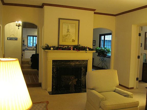 College Hill beauty from the entrance to the back wall. From the entryway is the formal dining room with wood floor and double window. To the left is the updated kitchen w/ gas range and new built-in microwave. The adjoining breakfast nook has a full wall of built-in cabinets. To the right of the entryway is the formal living room accented with a decorative fireplace and windows on two walls. Adjacent is the main floor family room with built-in shelves and storage and a bath with shower. This could be a main level bedroom. Sliding glass doors lead out to the patio. Back to the entry foyer there is a half bath and the wrap around staircase leading to the 2nd floor. The master bedroom is a true delight 15x23, plenty of room for sitting area, lots of built in storage. Master bath has a tub shower combo. There are two smaller bedrooms down the hall and a laundry chute in the hall bath. Rounded corners and arched doorways just add to the character and charm of this home. In the basement is a room being used as an office/den but does have a daylight window for egress. Fireplace in this room - decorative only. In the laundry room is also a sink and shower. There are many new windows. It is zoned air conditioning and about 10 years old. The roof and covered guttering - new in 2015. Sprinkler system and shed for lawn equipment storage. Family room fireplace is woodburning. Seller will take refrigerator.