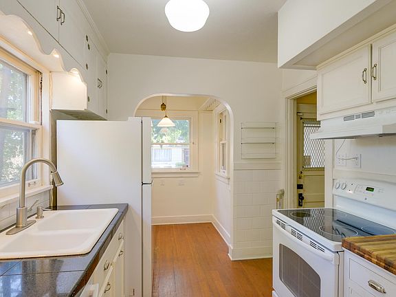 Sweet house on a corner lot is 2 blocks from the Farmer's Market and fun Montevilla village and close to Mall 205 and Mt. Tabor Park. Bright, lovingly cared for Cape Cod Bungalow has developed front landscaping and great backyard with deck, patio and grass for play. Features built-ins, laundry chute with new washer + dryer, wood fireplace, gas furnace, and full basement for additional living space. Two bedrooms on the main floor, and second floor suite with 2 spacious walk-in closets. Kitchen features energy saving fridge, and sitting nook. Driveway and detached garage. Located in Portland Public School district. Convenient to get anywhere in the city via 205, 82nd Ave. and Stark St. Mature dogs are welcome with interview, no cats. Lease term: 12 month lease, security deposit equal to one month s rent and pet deposit. Resident responsible for utilities and renter s insurance. Yard maintenance shared by renter and owner, lawnmower provided. Call or email to schedule a tour! Owner pays for trash and sewer and tenant responsible for other utilities.