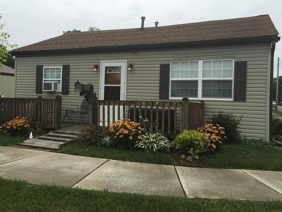 Charming little 2 bedroom home across from Suburban Village with detached 1 car 18x24 garage. This darling home was renovated in 2008 with plenty of White kitchen cabinets little eat in area, SS refrigerator and laminate floors. Home has some handicap features. Enjoy sitting on your deck or patio. Beautiful landscaping surrounds this tiny home.Home being sold as-is.