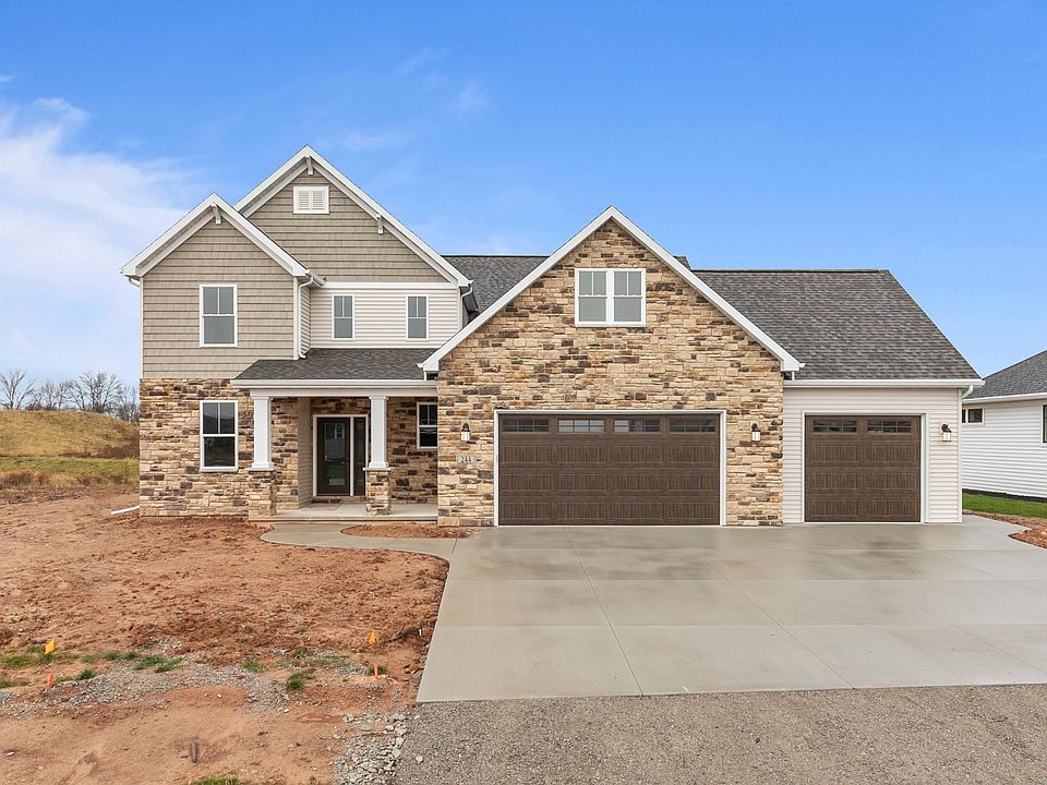 We are proud to debut our updated 2-story floor plan, the Juliette! Show-stopping kitchen features quartz countertops, professional range hood, large walk-in pantry, and dry bar. Grand front foyer opens into an expansive great room. Enjoy open concept living. The substantial great room centered around a beautiful stone fireplace that warms the space. Luxurious owner's suite with quartz countertops, marble-look tiled shower, water closet, and substantial walk-in closet. Convenient second floor laundry. Office and Media room included for additional work-from-home possibilities! Smart home features included! Fantastic location in quiet executive neighborhood. Within 10 minutes of the airport and the Fox River Mall. Future street, curb and gutter is included!