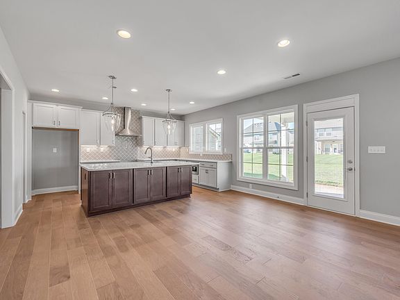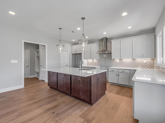 The two-story Carmichael plan offers lots of space, with four upstairs bedrooms, and a flex area off the entry. Main floor living areas include a large family room with fireplace and a wall of windows overlooking the rear yard. The family room is open to the kitchen and breakfast area. The kitchen features an island design, a large walk-in pantry, and easy access to the mudroom with drop zone, as well as the separate utility room with built in folding counter. Upstairs you will find the primary bedroom suite, three bedrooms, and a large loft. The primary suite has a trey ceiling and luxury bath with garden tub, separate shower, double bowl vanity and a large walk-in closet. Exterior details include a covered front porch and hip roof design. Lot 141PB