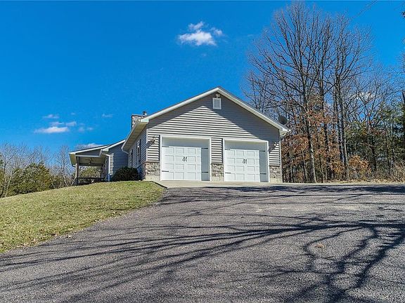 Custom Build!! One Owner!! Highly sought after area!! The first thing you notice when you enter are the beautiful 3/4" real hardwood floors along with the stone fireplace (Unnerstall) with hand carved mantel, a fireplace insert (Hearth and Home) with forced air and catalytic system. Large dining room off the kitchen with french doors, walkout to the patio. The kitchen is equipped with all stainless steel appliances, Birch cabinets (outlets on top) and Silestone countertops!! Carpet is 1yr old from Union Furniture. This 3 bedroom 3 bath home has a master bedroom you will not want to leave. This huge master has walk-in closet and the master bathroom has a jet tub and shower. All doors and window frames are hand stained and lets not forget the custom railing and handrail to the basement. There is also a 2 car garage with custom doors. The exterior is stone with vinyl siding. Chip n Seal driveway. All this sits on 7.5 acres. Plenty of room for kids to explore, parties and privacy.
