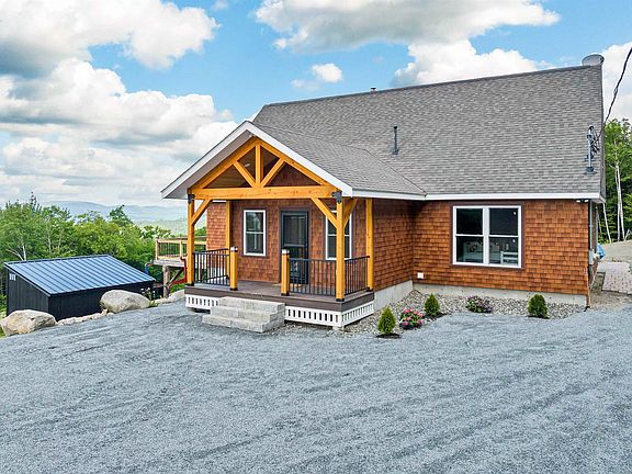 Nestled on 3 lots equaling 22.66 acres atop a serene mountain, this exceptional home offers breathtaking panoramic views stretching across the north & western horizons with unforgettable sunsets. Experience ultimate seclusion amidst nature's beauty, ideal for reveling in views and wildlife sightings. The newly added mud room with radiant heat floors is a great space to kick off your boots and drop your skis after a long day at the slopes. The main floor living area is of substantial size with reclaimed wood accents, a wood stove and enormous windows framing the picturesque vistas. A functional kitchen with a large island and walk-in pantry caters to culinary needs & is perfect for entertaining. Three spacious bedrooms plus a recently renovated bonus room allow for plenty of space for family & guests, and are complemented by three bathrooms including a luxurious steam shower. The finished walkout basement offers two large sliders, a pellet stove, a kitchenette area w/ fridge & storage galore! Sit outside by the charming masonry firepit or on the expansive deck to further enjoy the views. Property includes a prepped garage pad ready for a 24x36 structure, highlighting future potential. Just a short drive away, Franconia Notch State Park and Echo Lake beach offer limitless opportunities for outdoor adventure and relaxation. This home has so much to offer and truly is a must-see!