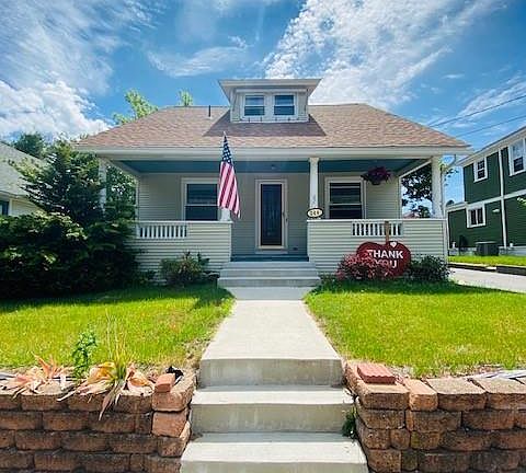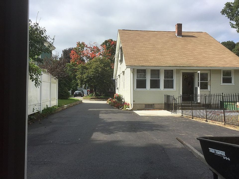 2019 CONCRETE PATIO, PAVED DRIVEWAY, WALKWAY and STEPS. 2014 BOILER and ROOF 2017 w/ CITY WATER & SEWER. HARDWOOD STAIRS lead to 2 bedrooms upstairs w/ POSSIBILITY of one on first floor. LIVING ROOM, DINING room, APPLIANCED Galley kitchen, OFFICE and a breezeway leading to LARGE BACK YARD. REPLACEMENT windows and VINYL SIDING. OVERSIZED 1 car garage and PAVED DRIVEWAY can hold 5-6 vehicles. NEW STOVE AND REFRIGERATOR!