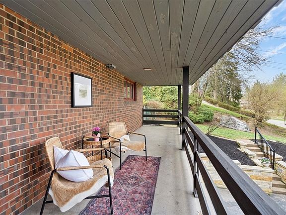 Who doesn't love a second chance? Back on Market! This bright mid-century is a delight for entertaining and gardening. The large fenced-in yard has plenty of room for flower beds and dining under the wisteria-covered patio or upper deck. Through the front door, be wowed by the cathedral ceilings, and the double-facing brick fireplace lending ambiance to the living room and den. Note the brick that was sourced from St. Bonaventure University! The kitchen features two ovens, a generous eating area and abundant natural light. The sunroom has sliding doors on each side, one leading to the patio and the other to a flat grassy area. Upstairs you’ll find 3 bedrooms and 2 full baths. The lower level has a game room and a nice Pittsburgh Potty. An oversized 2-car garage & location make this a must-see! Roof replaced in 2024! Thornburg amenities include parks, walking trails, tennis courts, & community events. 15 min to town & PIT! 5 min to I-79 & I-376!