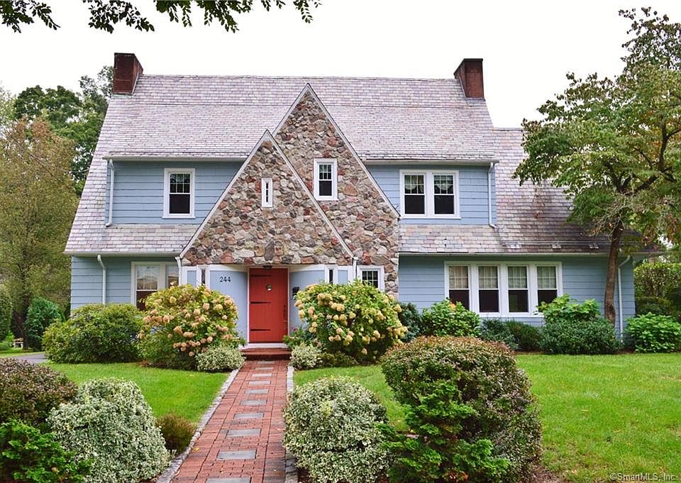 Charming English Colonial with slate roof and stone front accents. Step into the gracious foyer with turned staircase and your tour begins. The spacious living room offers lots of windows, HW floors and a wood burning fireplace. Enjoy gathering with friends and family in the formal dining room. The large eatin kitchen has been updated with granite counters and newer stainless appliances. Off the kitchen is a cozy family room with a bay window overlooking the lovely private yard and sliders to a wrap around brick patio. The oversized master suite allows lots of space plus enjoy the remodeled master bath with with a large custom shower and heated floors. HW and a walkin closet complete the suite. There are 2 additional bedrooms, a wonderful office and a 2nd remodeled full bath. The 3rd floor has 2 more bedrooms and a sweet original bath with clawfoot tub. There are newer thermo windows throughout, front & back stairs, a new gas boiler 2 zones plus 200 amp electrical and a detached 2 car garage. Don't miss this one.