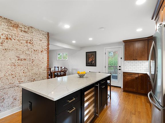 Discover this beautifully updated 3-bedroom, 3-bath ranch in Bethel Park. A welcoming open layout highlights gleaming hardwood floors, abundant natural light, mid century character & cozy fireplaces. The stunning kitchen is a showpiece with quartzite counters, an oversized island with seating, custom cabinetry, SS appliances including a wine/beverage center & an exposed brick accent wall. Seamless indoor-outdoor living awaits with a dining and living rooms that opens to a sprawling wraparound deck and expansive, fully fenced yard. Retreat to spacious bedrooms w/ walk-in closets & enjoy spa-like baths featuring designer tile & upscale finishes. A finished game room w/ another fireplace, full bath, tons of storage, expansive laundry room & oversized garage that could fit 4 cars add exceptional versatility. Modern updates, mid century character, incredible storage and a location that can’t be beat, this home offers the perfect blend of function and style.