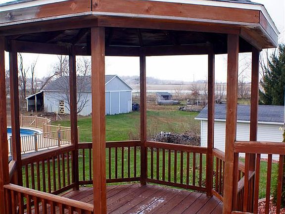 Beautiful 3 Bedroom 3 Bath home on 4.59 acres in Boone Township, Hebron. The home has a full basement, 2 car attached and 1 car detached garage, a 30x40 pole barn with 4 stalls and hay loft, it's own pump and automatic water for the animals. The master bathroom has been extensively remodeled with granite counters on Amish made cabinets, a heated tile floor, a 60x40 tiled shower with dual shower heads, a claw foot tub and dual sinks. The living room has a log fireplace with built in wood storage. There is new carpet and most of the home has been reinsulated and new drywall added. The lower level has a gas fireplace, an upgraded furnace, whole house surge protector in the breaker panel, and on demand hot water heater. Just off the rear deck there is an automatic natural gas generator that runs the entire house and outbuildings in case of power outage. The multi-level deck, 30' pool with composite decking and gazebo make this a great place to call home!