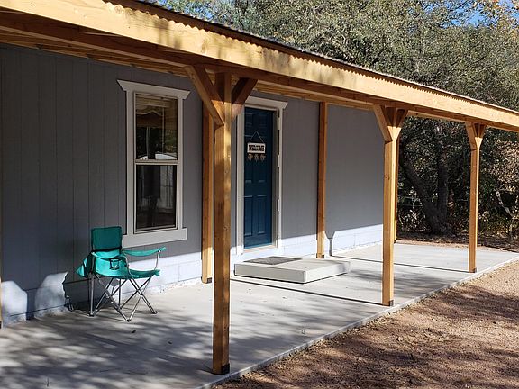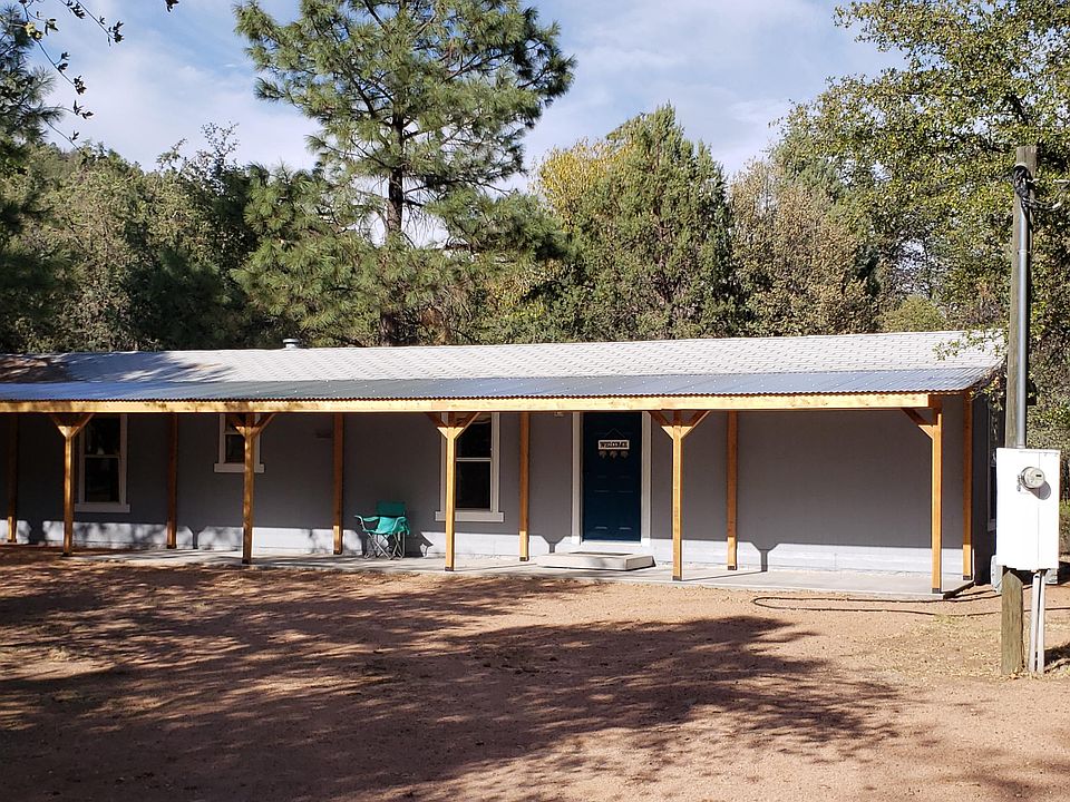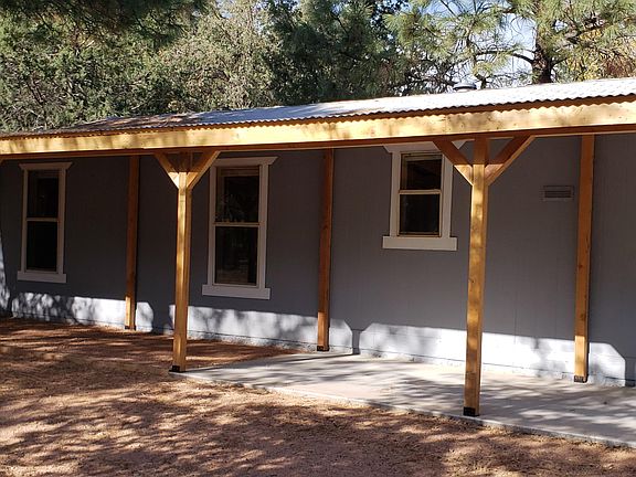 LIKE NEW 1999 Cavco HOME! with full front covered patio and County-permitted foundation system. Brand new gas range/oven, new counter top & easy-to-clean laminate flooring. Indoor laundry hook-ups. Functioning forced air, central heat. Shaded nearly all day long with mature oaks and ponderosa pines. New septic system installed in 2004. New carpet and wood laminate flooring in spring 2020. 2 private water wells. Active 200-amp APS electric service. Located close to Tonto National Forest and near Cherry Creek. Enjoy 4 seasons a year or use as your getaway place!! Gila County maintains the roads in the subdivision; no HOA. Pump house well constructed and safe for storing feed and tack. Detached metal storage shed on raised up foundation.