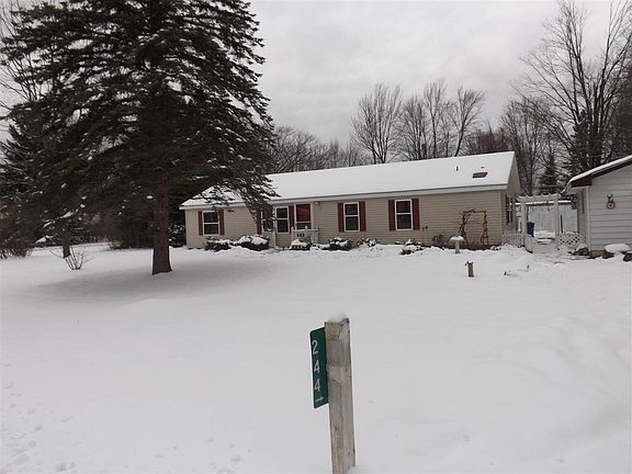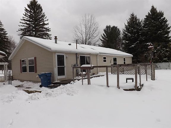 Beautiful 3 bedroom, 2 full bath split floor plan ranch built in 1998. This house is in excellent condition. Large County Kitchen with center island, built in desk, breakfast nook area, all appliances staying too! The kitchen opens to the Formal Dining Room and Living Room area. Wood burning brick fireplace in the Living Room to keep you toasty on those cool up north evenings. Private Master en Suite with closet, large bathroom complete with garden tub and stand up shower with a large bonus room with French doors that would make a perfect nursery, den/office, or workout room. No maintenance vinyl siding. Double corner lot giving you elbow room. 24x24 detached garage with garage door opener. Backyard is all fenced for privacy. Hurry - don''t let this good one get away!
