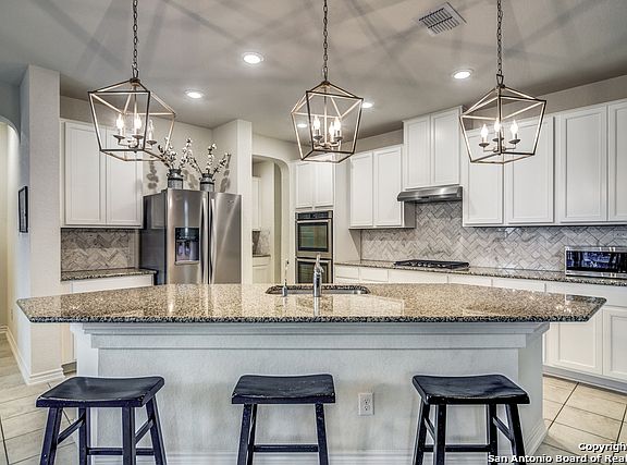 Gorgeous 5bed 2.5 bath on a green bet in highly sought after Herff Ranch! This elegant open floor plan is complimented with upgraded white cabinets with a beautiful marble backsplash, tile floors and tons of natural night! Kitchen is equipped with double ovens, large island and the just outside the kitchen is coffee bar/butlers pantry. Come see this stunning family home!