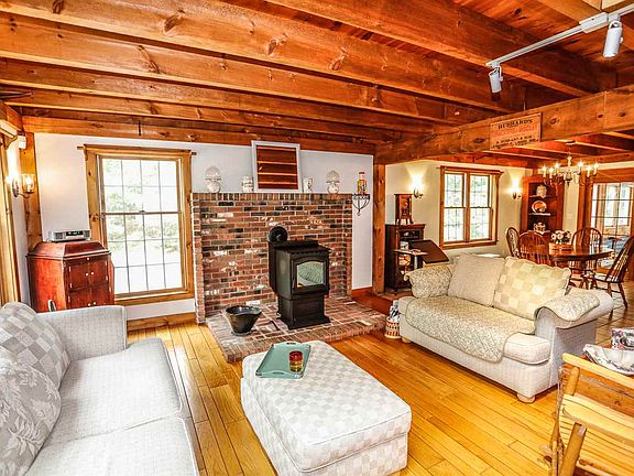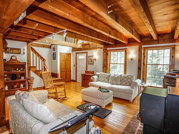 Impeccable, unique, and updates galore, describe this single-owner Post and Beam Cape on a private 2 acre lot. Nothing to do for the new owner of this gem! Oversized 2 car garage with 2nd story storage was completed in 2013. Step into the bright and airy home to find an updated granite and stainless kitchen (2014) complete with double oven and 5 burner gas cooktop. Kitchen sink has a Culligan Reverse Osmosis water system and entire house Culligan water softener. Master bedroom located on 1st level has new bath with gorgeous tiled double shower (2017). Relax on your 4 season porch off the dining area with wood stove heating. Entire house has 9 year young hardwood flooring.All windows are young (2010), all skylights replaced with Velux solar skylights and solar shades (2013). Furnace, Central Air and Rinnai Tankless water heater all installed in 2008. BRAND NEW composite front steps with vinyl rails. Large lower level could be perfect for long-terms guests, complete with 3/4 bath and walk out and plumbed for a kitchenette. Kohler 12KW generator with transfer switch will never leave you in the dark again. Radon mitigation system and alarm system just a few more perks to mention. Minutes to major routes for shopping and commuters. See attached list of upgrades and amenities.