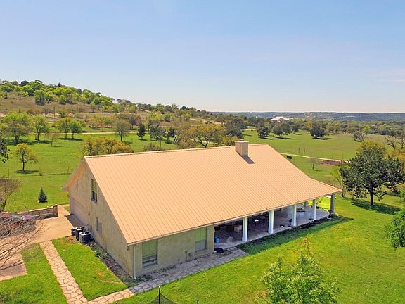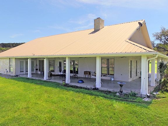 Hill Country living at its finest! This 3500 sq. ft. limestone home has it all! Open concept, spacious living area with soaring ceilings, wall to wall windows and a large stone wood burning fireplace perfect for those chilly nights. Kitchen is equipped with granite counter tops, stainless steel appliances, double ovens, plentiful cabinet space and spacious pantry. There are 4 bedrooms, 3 bathrooms + L shaped bonus space upstairs can be easily used as an office and or media room or simply guest quarters. Split floor plan with 3 bedrooms and 2 baths downstairs. The 4th bedroom and 3rd bath are upstairs. Oversize 2 car garage with extra storage space.This property is an entertainers dream sitting on 5.49+/- GORGEOUS acres with agricultural tax exemption and approx. 1600 sq. ft. of covered porches taking in the stunning views of the Hill Country. This property has a private feel nestled at the end of culdesac with gated entry and perimeter high fencing, right outside of the city limits yet minutes to town.