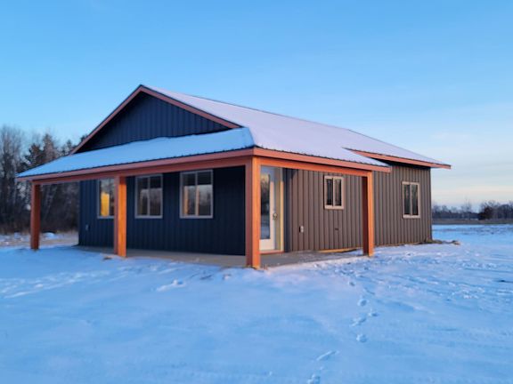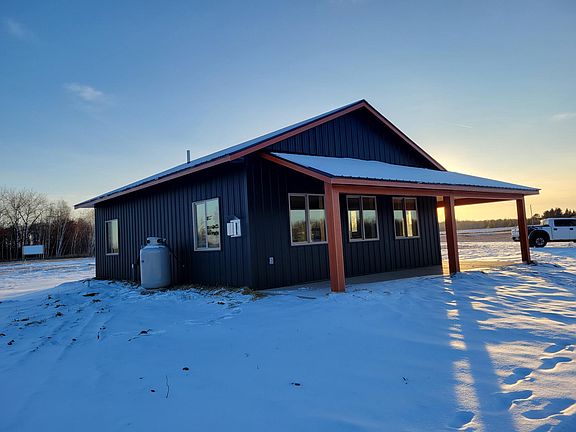 Welcome to this cozy little (not tiny) home in the country. Sitting on 7.5 acres gives ample space for future outbuildings or whatever you're dreaming of. The newly constructed home features a maintenance free exterior that offers a covered patio overlooking rolling fields and woods. Upon entering the home you are greeted by an open floor plan with the kitchen and living space flowing together. A corner kitchen with center island, large windows providing great natural lighting, high end vinyl wood look flooring, a natural wood vaulted ceiling and high efficiency corner gas fireplace with tv hook ups in place above it. Utility closet in the hallway along with full bath and 2 bedrooms make up the remainder of the home. Larger bedroom has a walk-in closet with washer/dryer hookups. This efficient and very well-built little gem can be yours! Book a showing fast!