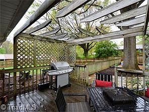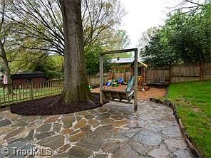 Really charming brick home with beautiful living spaces inside and out! Remodeled kitchen with new cabinets, countertops and stainless appliances. Wood floors, new flooring in bathrooms, updated light fixtures. Fully fenced backyard with storage building. Gorgeous deck with pergola and stone patio area adjoining playground equipment which remains with property. Full unfinished basement, new roof in 2011. Great location, close to Baptist and Novant Hospitals, downtown and mall area. See pics!