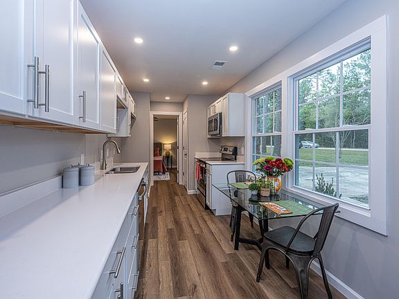 Meticulously renovated single story, 4 bedroom, 2 full bath brick home. Enjoy peace of mind knowing that everything is brand new: roof, HVAC/ductwork, plumbing & electrical. Also, Smartcore LVP flooring throughout, tile in master bath, new kitchen cabinets (loads of storage!), quartz countertops, and GE stainless steel appliances. No HOA and the lot is large! At .65 acres, there is ample room to add a garage, carport, etc. or to store your RV, boat, or other large equipment. The spacious, quiet backyard borders a dense wood line - providing an ideal country feel while conveniently located less than 5 minutes from the brand new Moncks Corner Marketplace with Publix grocery store and more. Come see this gem before it's gone!
