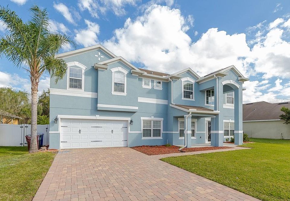 Captivating 6 bedroom, 4 bathroom, single-family home located in the beautiful neighborhood of Cypress Preserve in St. Cloud. Upon entering this home one will immediately notice the wood floors, elegant archways, a formal living room and dining room. The main level also features a large open kitchen that boasts 42" cabinets, stainless steel appliances, granite countertops, walk-in pantry, and a breakfast bar that opens to the spacious family room. The first floor also includes a guest bedroom, a full bathroom and a theater room. The second story of the home features 5 generously sized bedrooms, 3 full bathrooms, and a bonus room. Spacious master suite and master bathroom with double vanity sinks, garden bathtub, separate tiled shower, and walk-in closet. Sliding glass doors from the family room opens to the large covered patio and fenced backyard. Conveniently located near Florida Turnpike and Hwy 192.