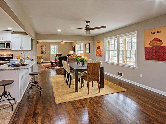 This is the large home for which you have been waiting! Huge living space w/ big living room, dining room,& eat in kitchen! Hardwood floors & gorgeous tiled baths. High end lighting, nest thermostat. Master holds king bed, large master bath w/ double shower heads & double vanity w/ granite. good sized closets, large patio, private setting sitting up & away from street. turn around in driveway. Amazing kitchen w/ island, granite counters, new appliances. all new fixtures & new hvac and h20 heater + fresh paint! watch the video tour. 1 yr home warranty included!