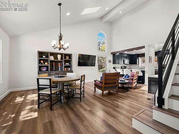 Welcome to this beautifully updated home tucked away on a quiet cul-de-sac in one of Colorado Springs’ most desirable neighborhoods! With 4 bedrooms, 3.5 bathrooms, and nearly 3,000 square feet of thoughtfully updated space, this home offers both style and comfort in a prime location. Step inside to luxury vinyl plank flooring throughout, fresh interior paint, modern light fixtures, and custom wrought iron stair rails that add a touch of elegance throughout. The dramatic 2-story great room makes a stunning first impression, while the completely remodeled kitchen shines with brand-new cabinets, sleek Quartz countertops, and a contemporary design that’s perfect for everyday living and entertaining alike. Just off the kitchen, the cozy family room features a classic wood-burning fireplace—ideal for Colorado evenings. Upstairs, you’ll find a spacious primary suite with an attached and beautifully updated 5-piece bathroom, plus two additional bedrooms and another full bathroom. The lower level offers a flexible layout with a large recreation room (currently set up as a bedroom), an additional bedroom, full bath, and laundry area. Step outside to your new backyard oasis, complete with new sod, a stunning custom retaining wall, and a dedicated shed. But that’s not all—you’ll also love the separate office structure with electricity and A/C, making it a fantastic work-from-home space or creative studio. All of this is located within the boundaries of award-winning schools, and just minutes from Garden of the Gods Park, world-class hiking and biking trails, and easy access to shopping, dining, and more. This is the one you’ve been waiting for—modern upgrades, a dream backyard, and a location that’s hard to beat!