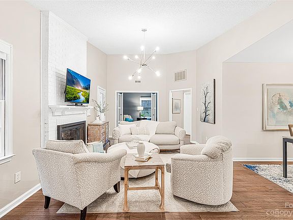 LOCATION, LOCATION, LOCATION! This newly renovated home is in the heart of Quail Hollow. Upon entering the home, you're greeted with an open floor plan, vaulted ceilings, a gas fireplace, and a beautiful kitchen. The kitchen has high-end appliances, tile backsplash, an island, and plenty of cabinets. The sunroom is perfect for enjoying the sunshine while looking out at the brick patio and backyard. As you walk through the home, you'll find two more bedrooms (one is currently being used as a home office) and a full bathroom. At the end of the hallway, the primary bedroom offers privacy, a walk-in closet, and a gorgeous spa-like bathroom. New bedroom carpeting in November 2022 and new roof in 2021. This is the ultimate low-maintenance home; HOA handles landscaping, sewer, and water! Walking distance to shopping, dining, and the greenway and a short drive to SouthPark and South End.