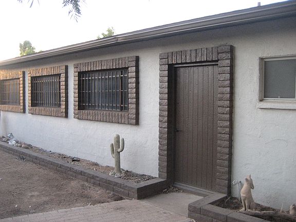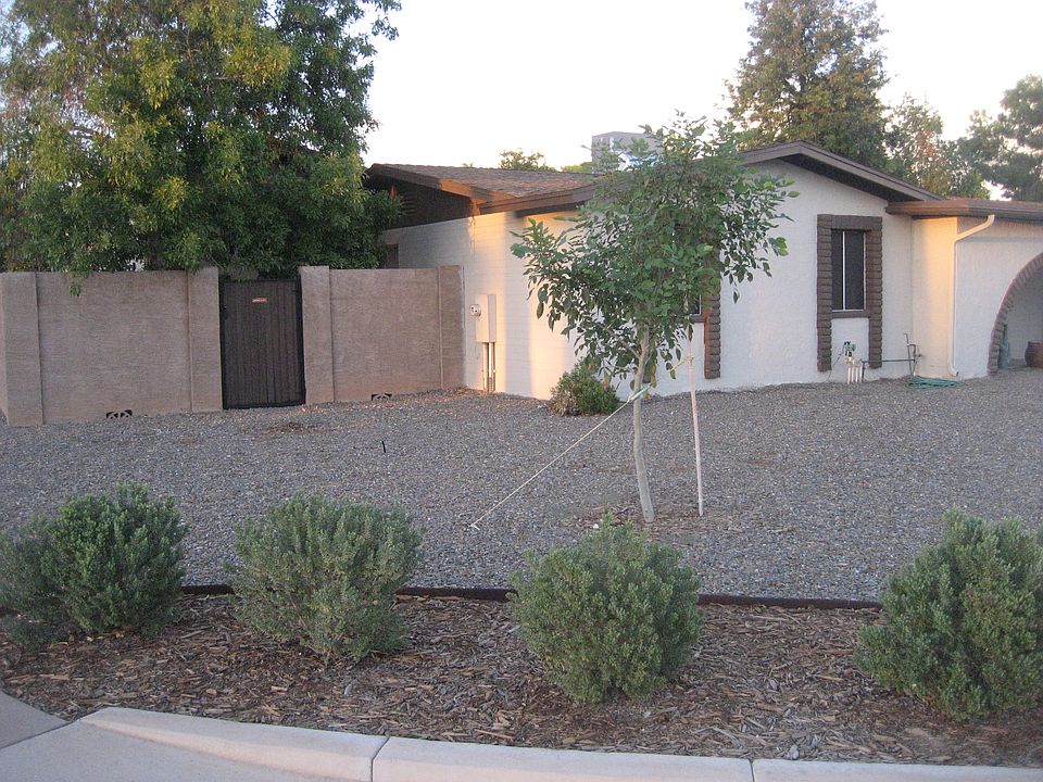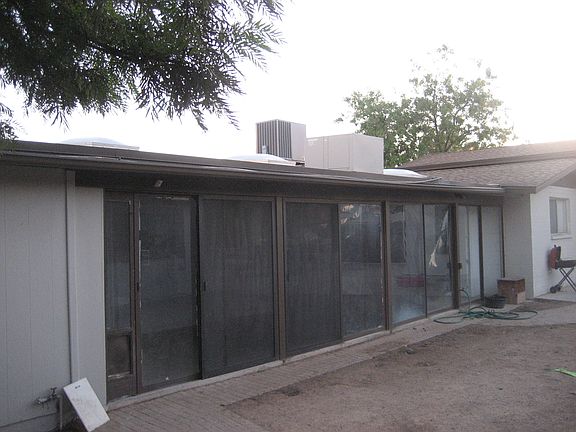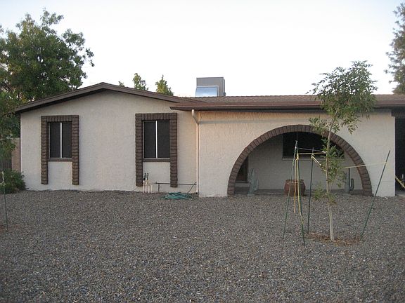 Conner lot, RV gate on the side street, the back yard has no maintenance, concrete and few DG areas and four trees. There are two garages in the back one is a 30ft RV garage the other is a 3 car garage with A/C and a bathroom 1400 sq.ft. A/C unit on the home is four years old; the roofs on all of the structures have been replaced four years ago and come with a transferable warranty. Front yard has the landscape complete with a drip system for the trees. Back porch has been closed in for an Arizona type room. The water heater was replaced two years ago. The house also has a swamp cooler system that is 5 years old and the filter was just replaced last year. Inside it is a four bed room, one room that would make a great office. The house was completely painted last year all three buildings outside only. Inside of the house could use some updating in a few rooms only, kitchen and two bathrooms. Very nice home and a great neighborhood with all three schools in walking distance or a small business would love this home. No HOA. Currently remodeling the inside will have picture available when the work is done. Work should be completed soon.