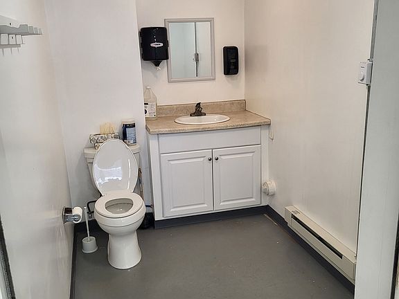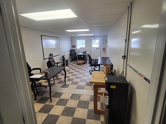 2,600sqft commercial space. Served by two 14ft wide, 14ft high overhead doors on both ends and entrance doors on both ends. Unit features 20' clear ceilings and overhead lighting. Shop is heated by two 100,00BTU Propane Radiant heaters. Office has baseboard electric and wall unit for AC. Unit features private bathroom. Main office is 300sq ft with a small break room attached. Sperate tool room/lab area is an additional 154sqft of finished space and a large 600sqft mezzanine level is above office area. Main shop is 68feet deep and 38 ft in width at the widest point. Space has 3 phase power. Water and septic along with all exterior maintenance and upkeep are included in the rent. Tenant is responsible for electric and internet (hi speed via Comcast) and propane if shop heat is desired. Clean, well-maintained property with easy truck access/turn around and level grade. Ample daily commuter parking and additional outside storage/overnight parking space is available to be included with lease 12 month lease