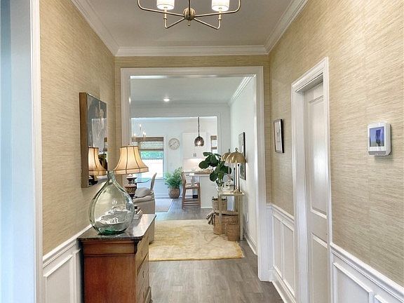 This beauty has designer finishes that makes it one-of-a-kind! Located just 7.6 miles from Publix and just a short distance further to Auburn University on .92 acre with fenced in yard. Grasscloth wallpaper in the foyer with wainscoting is eye catching, bringing immediate warmth to the home as soon as you walk in! Oversized great room with gas fireplace creates a great gathering area with an open concept arrangement. Dining room offers abundant windows for natural light. Well appointed kitchen w/quartz countertops, eat-in island and walk-in pantry. Gorgeous upgraded lighting throughout. Wallpaper in the primary adds a warm touch with the custom curtains. Looking for Gameday or short-term rental? The auburn theme is carried out tastefully throughout with this designer's touch. Fun wallpaper print brightens up the guest bath. Huge walk-in closet for the primary and nice sized walk-in closets for both guest rooms. Relax on the back porch with nothing but beautiful trees beyond the fence!