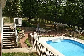 Ten acre country estate in eastern Powhatan, paved private road & paved driveway, spacious two-story home with full walk-out basement.  Fenced pastures & three-stall barn perfect for horses.  Lovely in-ground pool with extensive patio overlooking grounds & pond.  Wrap-around porch, wood floor up & down, three tile baths, two brick fireplaces with wood stoves, wonderful kitchen with sunny dining area overlooking pool & pond. Private setting, convenient location!