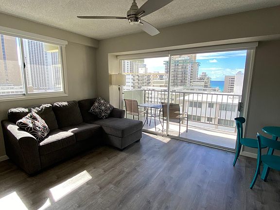 Rarely available 536 square feet one bedroom one bath Waikiki end unit apartment with large windows and two private lanais for rent: perfect place for artists, remote workers, traveling professionals to do study, research, creative work and relax. From your spacious bedroom with a lot of natural light and lanais, the guests can enjoy watching ocean, surfing , boating, diamond head, ala wai canal, golf course, mountains. What an irresistible beauty at the paradise! Plus few minutes walk to Kuhio Beach and international market. Honolulu Zoo, Waikiki Aquarium, Luau and Hula Shows are also nearby. Salt water pool and community laundry in the property. Famous Hy"s Steakhouse Restaurant is right on the ground floor. Bus stop is outside the building and it can take you to Ala Moana, magic Island, Wal Mart, 24 hours fitness center, Don Quijote supermarket. Private parking is available at the second level of the property at C-3 for $255 a month . It is also budget saving to take Ubers to the airport, Pearl Harbor. Water, electricity is included in the rent. High quality central air conditioning. Free bulk services for cable TV, WiFi and internet. No taxes. The most recent renovated kitchen and bathroom are custom made. Fully furnished. No pets allowed in the building. No party in the apartment and lanai. No smoking. Renter's insurance required. Building visitors parking opens from 8am to 5pm. 30 days minimum.