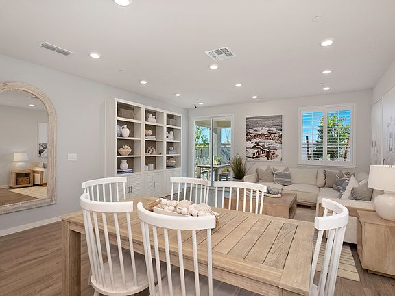 The 1,504 plan has four bedrooms, three bathrooms and a two-car garage. Two secondary bedrooms are located at the front of the home, separated by a shared bathroom. Further on, a spacious great room is separated from the kitchen by a large island with room for seating and a dining area. Just off the kitchen, a hall leads past the laundry room, one more bedroom and bathroom, to the primary bedroom with its walk-in closet, double-sink vanity and a shower.